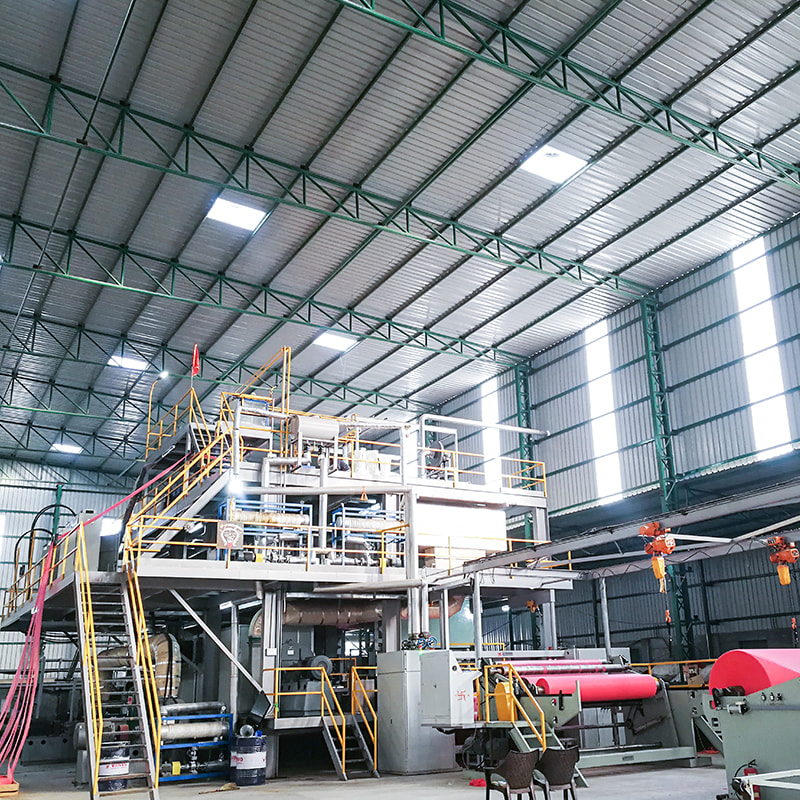 PP 스펀 본드 부직포 기계는 PP 스펀 본드 부직포를 생산하는 데 사용됩니다. 우리 기계의 슬리 터를 사용하면 직물을 다른 요구 사항에 맞게 폭으로자를 수 있습니다. 기계 작동 속도는 10-350m / min, 필라멘트 데니어 : 1.8-2.3 데니어