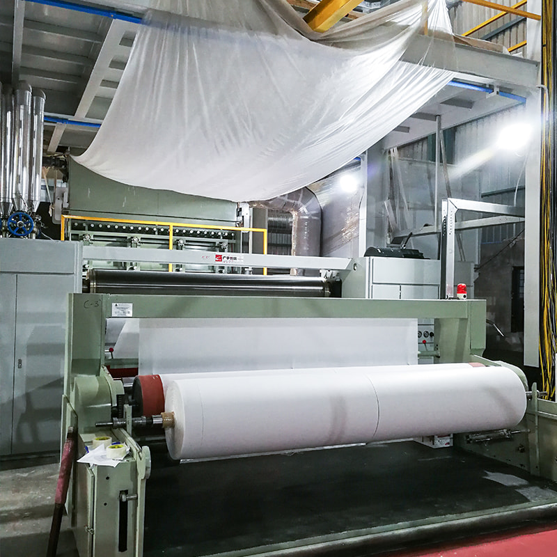 회전 공정 : 컬러 용융물은 회전 빔에 의해 필라멘트로 회전하여 부직포 직물의 기초를 형성합니다.