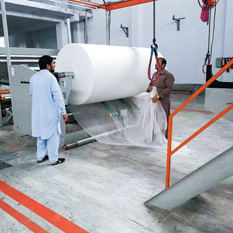 PP 스펀 본드 부직포 기계는 PP 스펀 본드 부직포를 생산하는 데 사용됩니다. 우리 기계의 슬리 터를 사용하면 직물을 다른 요구 사항에 맞게 폭으로자를 수 있습니다. 기계 작동 속도는 10-150m / min, 필라멘트 데니어 : 1.8-2.3 데니어