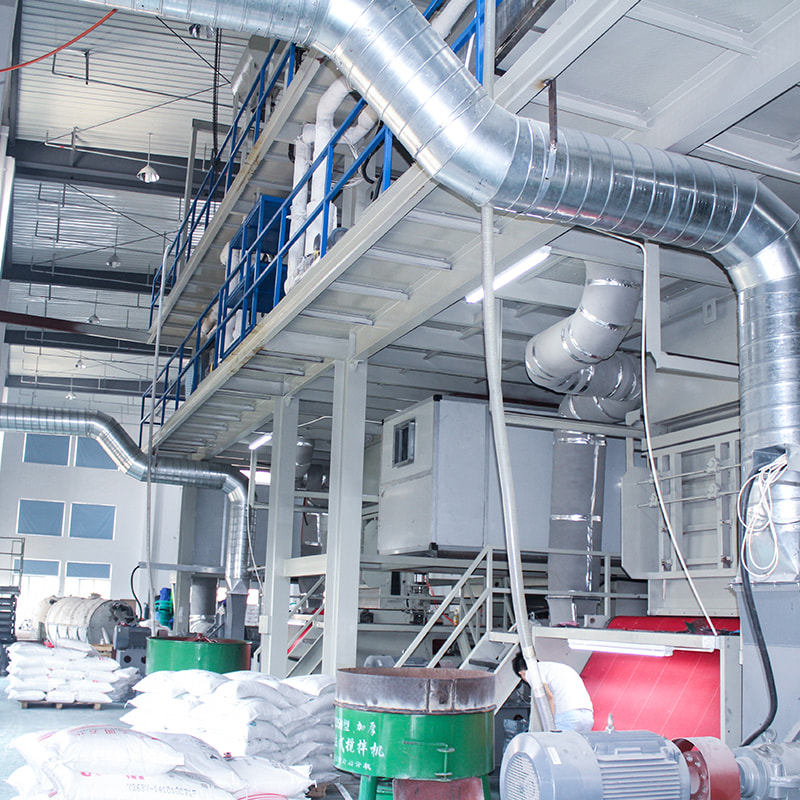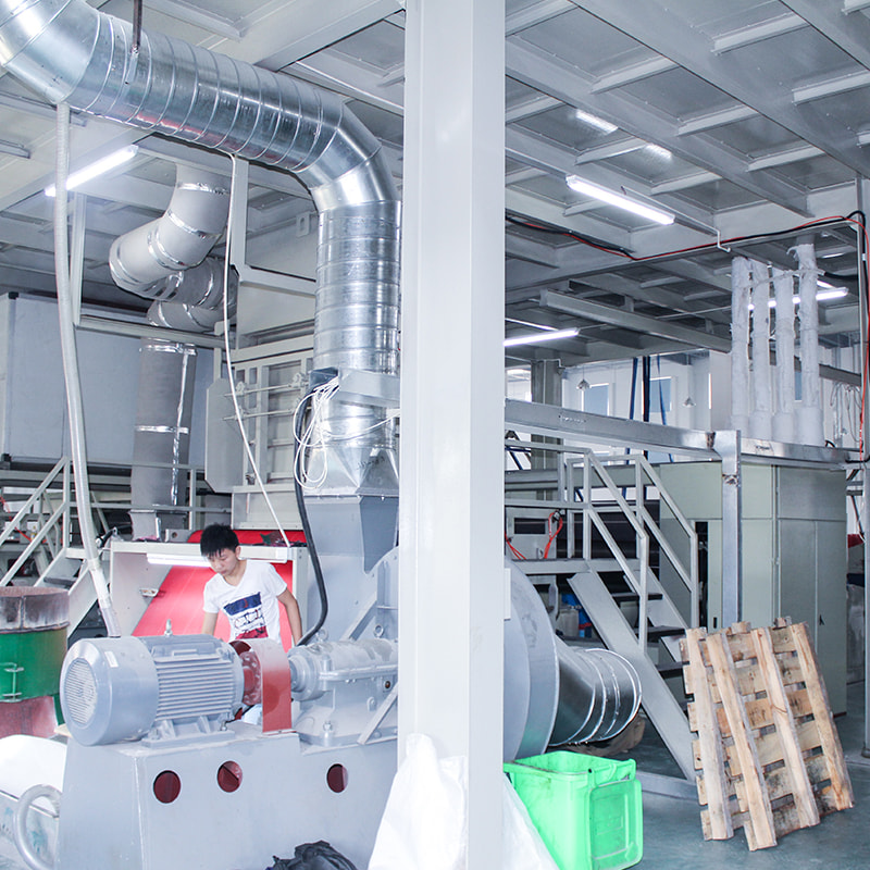 회전 공정 : 컬러 용융물은 회전 빔에 의해 필라멘트로 회전하여 부직포 직물의 기초를 형성합니다.