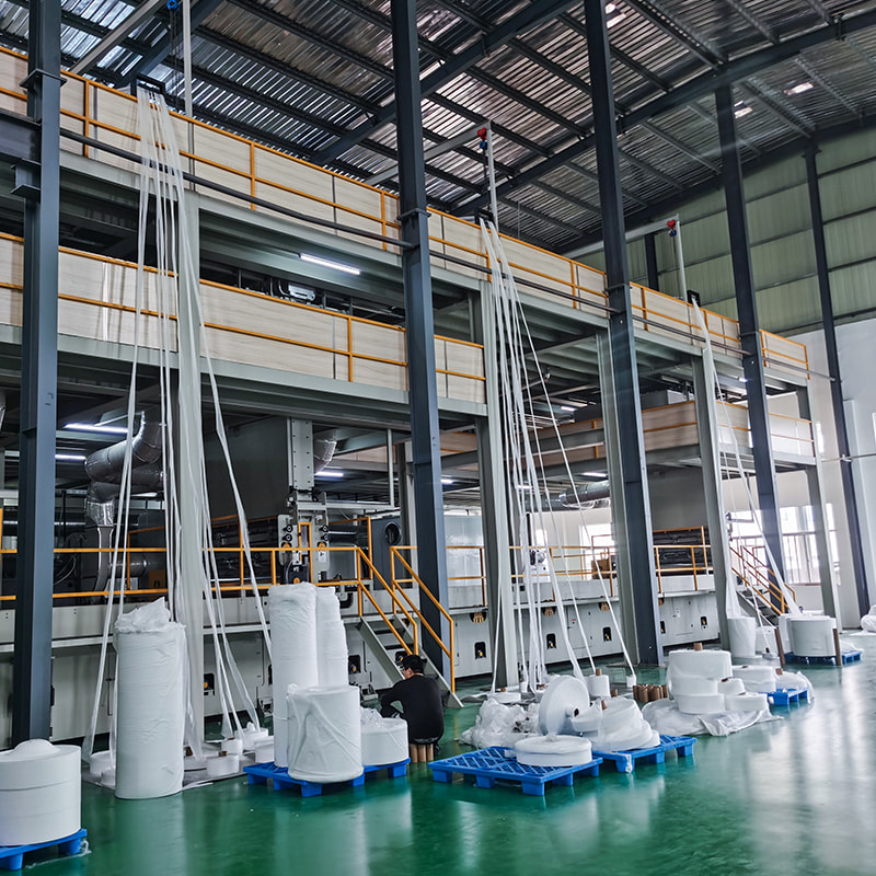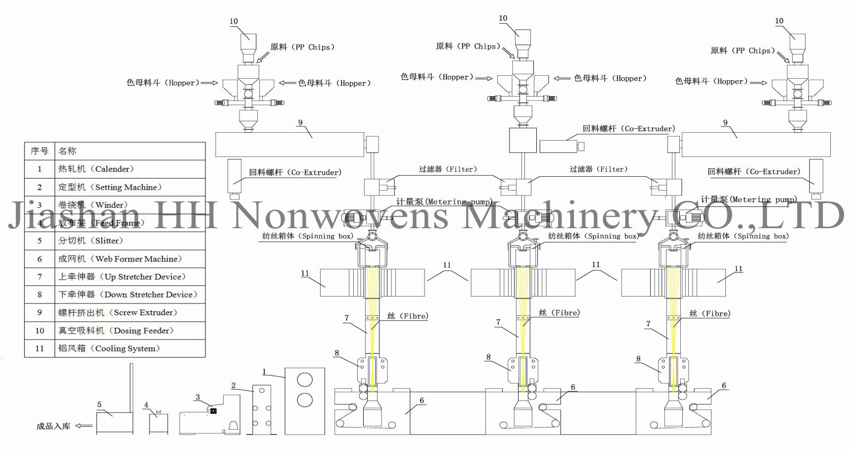 PP 스펀 본드 부직포 기계는 PP 스펀 본드 부직포를 생산하는 데 사용됩니다. 우리 기계의 슬리 터를 사용하면 직물을 다른 요구 사항에 맞게 폭으로자를 수 있습니다. 기계 작동 속도는 10-450m / min, 필라멘트 데니어 : 1.8-2.3 데니어