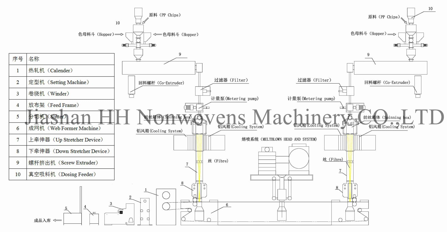 / 제품 / Spun-Melt 부직포 기계 / Three Beam (SMS) Spun-Melt 부직포 기계